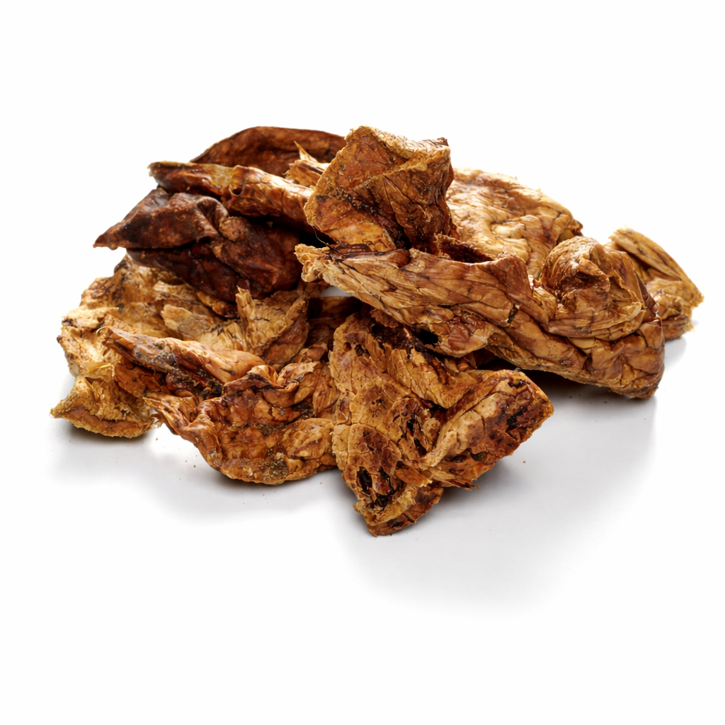 Unsere Büffel-Lunge für Hunde ist ein besonders fettarmer und gut verträglicher Naturkauartikel vom Wasserbüffel. Durch die schonende Trocknung bleibt die luftige, poröse Struktur erhalten – ideal für Hunde, die einen weichen bis mittelfesten Kausnack bevorzugen.